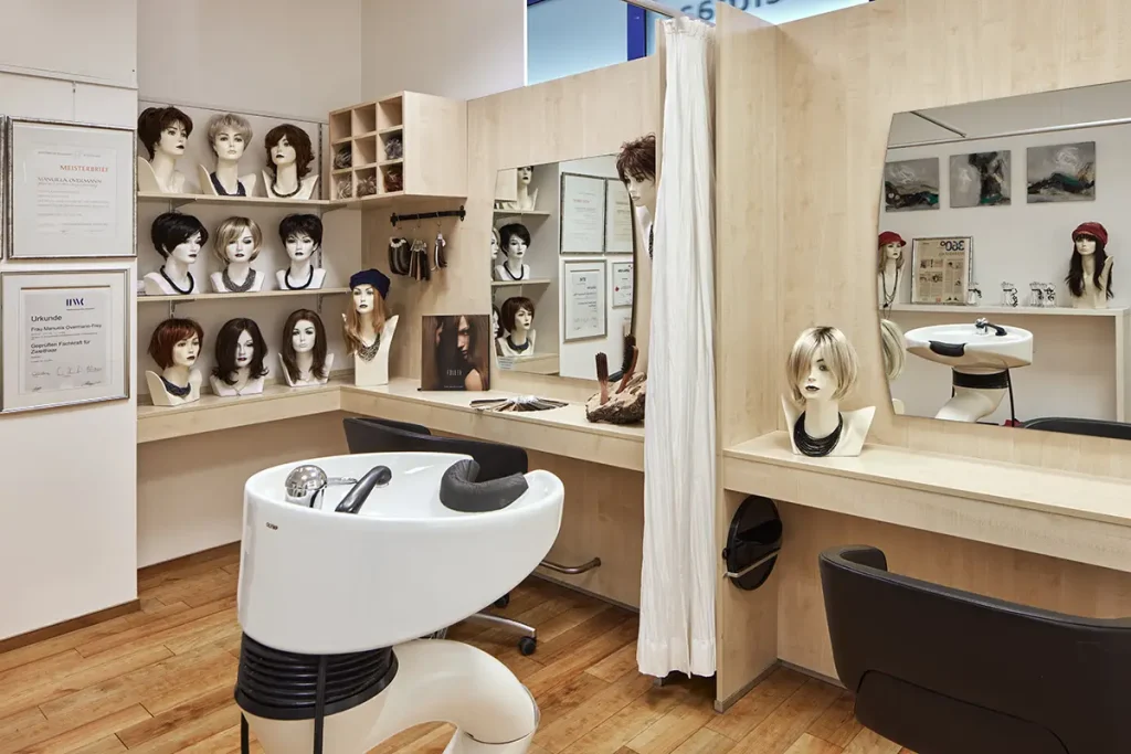 In unserem separaten Zweithaarstudio spezialisieren wir uns auf Haarersatz mit Perücken. Wir nehmen uns Zeit für eine individuelle Beratung und finden gemeinsam mit Ihnen den perfekten Schnitt. Ihre Privatsphäre ist uns besonders wichtig, daher ist unser Zweithaarstudio vom Friseursalon getrennt. Bei schönem Wetter bedienen wir Sie gerne in unserem schönen Garten. Genießen Sie Ihren Friseurbesuch/Aufenthalt in unserem stilvollen, lichtdurchfluteten Salon. Wir freuen uns auf Ihren Besuch!